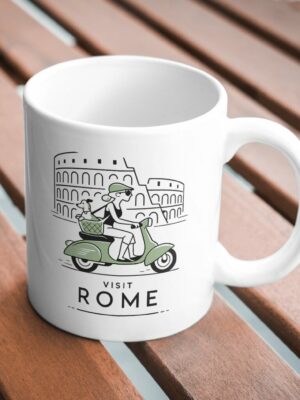 24,99 $Original price was: 24,99 $.16,99 $Current price is: 16,99 $.A charming Rome-inspired mug featuring a vintage scooter ride past the Colosseum with a loyal dog companion. Perfect for travel lovers and Italian dreamers who live for adventure and espresso moments. -