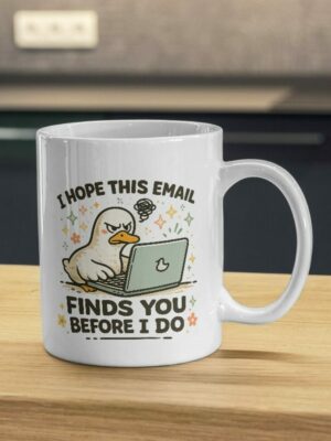 I Hope This Email Finds You Before I Do Mug – Angry Duck Work Email Humor