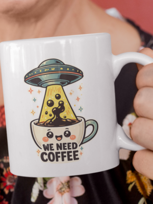 We Need Coffee Alien UFO Funny Mug