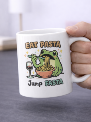 Eat Pasta Jump Fasta Mug – Funny Frog Pasta Coffee Cup