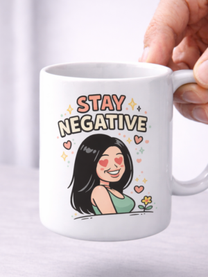 Stay Negative Mug – Heart Eyes Girl Sarcastic Positive Vibes Twist Cup