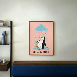 Cute Penguin Wall Art Print | Chill & Clean Illustration | Cozy Cartoon Bathroom Art | Feel-Good Minimal Wall Decor