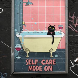 Funny Cat Bathroom Art | “Self-Care Mode On” Digital Print | Relaxing Bathtub Wall Decor | Cute Cat Poster