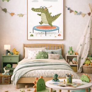 • Whimsical Crocodile Wall Art Print – Cute Animal Illustration for Nursery, Kids Room & Playroom Decor