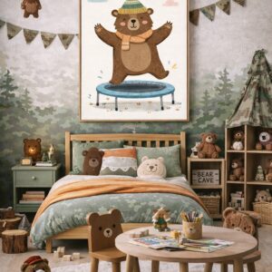 • Whimsical Bear Wall Art Print – Cute Animal Illustration for Nursery, Kids Room & Playroom Decor