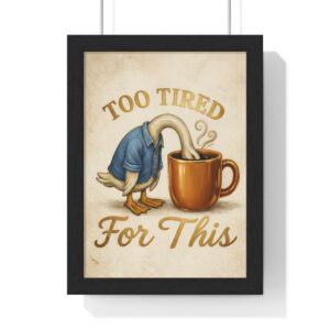 View wishlist“Too Tired for This Wall Art Print – Funny Duck Coffee Illustration, Relatable Morning Humor, Cozy Kitchen & Office Decor” has been added to your wishlist