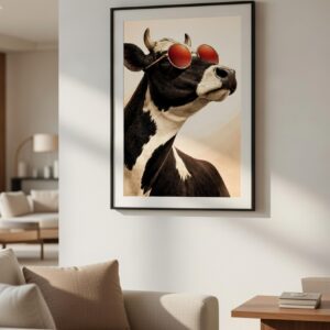 Cool Cow Wall Art Print – Stylish Animal Portrait with Sunglasses