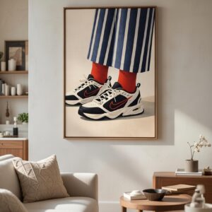 10,89 $A crisp street-style illustration pairing bold trainers, red socks, and graphic stripes for modern decor. -