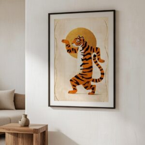 Dancing Tiger Sun Art Print – Playful Modern Animal Illustration