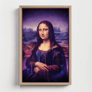 Cosmic Mona Lisa Wall Art Print, Surreal Galaxy Portrait Poster, Dripping Dream Art, Modern Renaissance Wall Decor, Psychedelic Statement Artwork