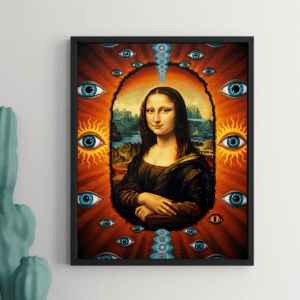 • Trippy Mona Lisa Wall Art Print, Surreal Sun & Eye Portrait, Psychedelic Renaissance Artwork, Mystical Cosmic Wall Decor, Modern Statement Art Print