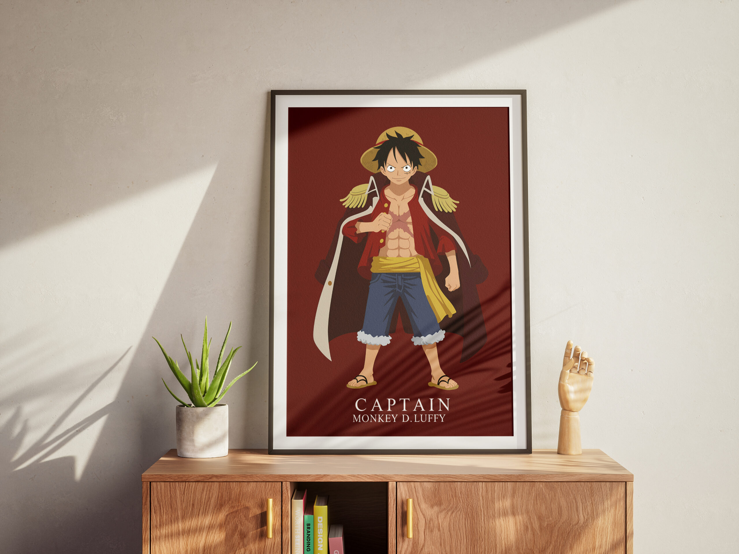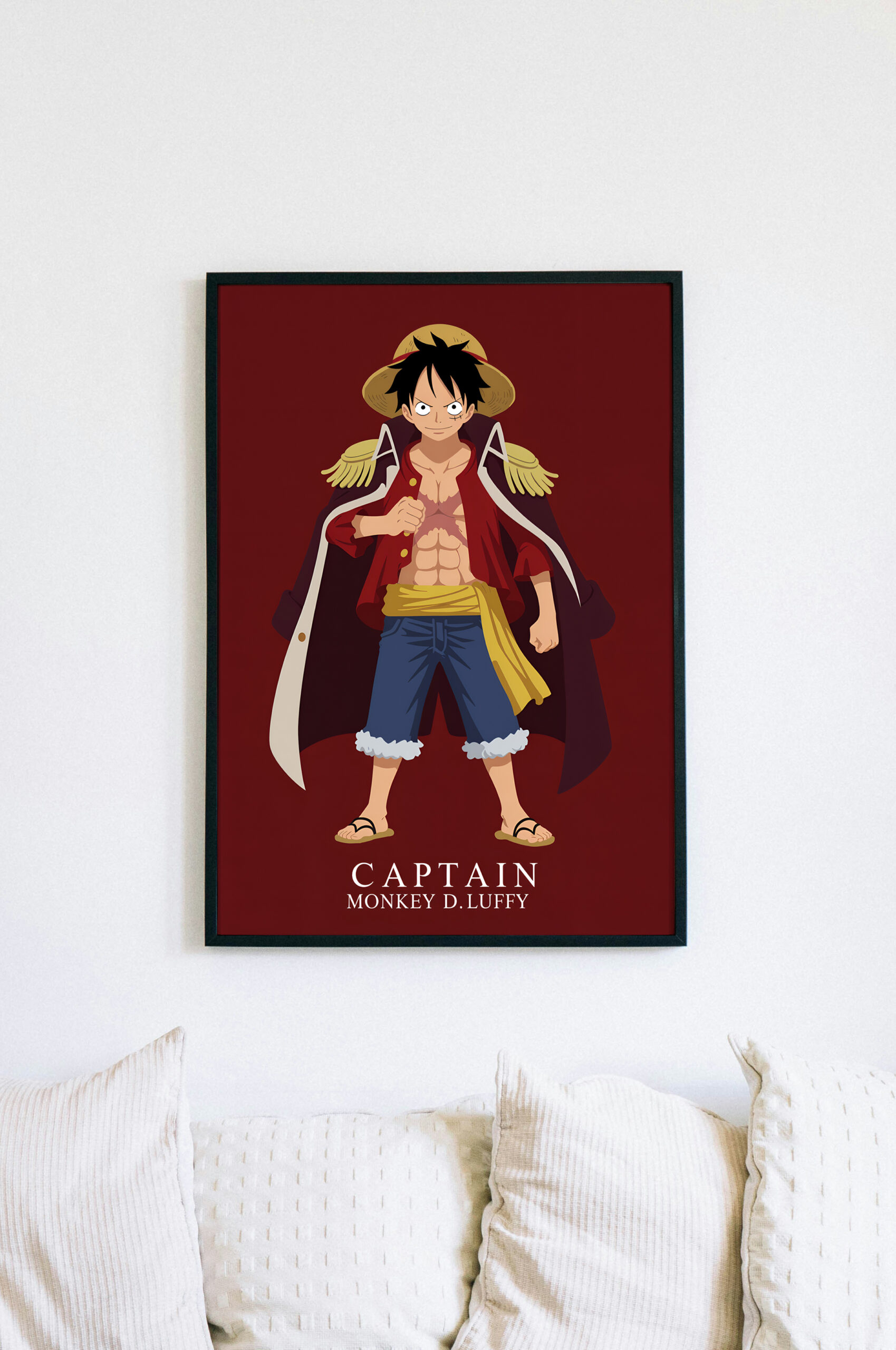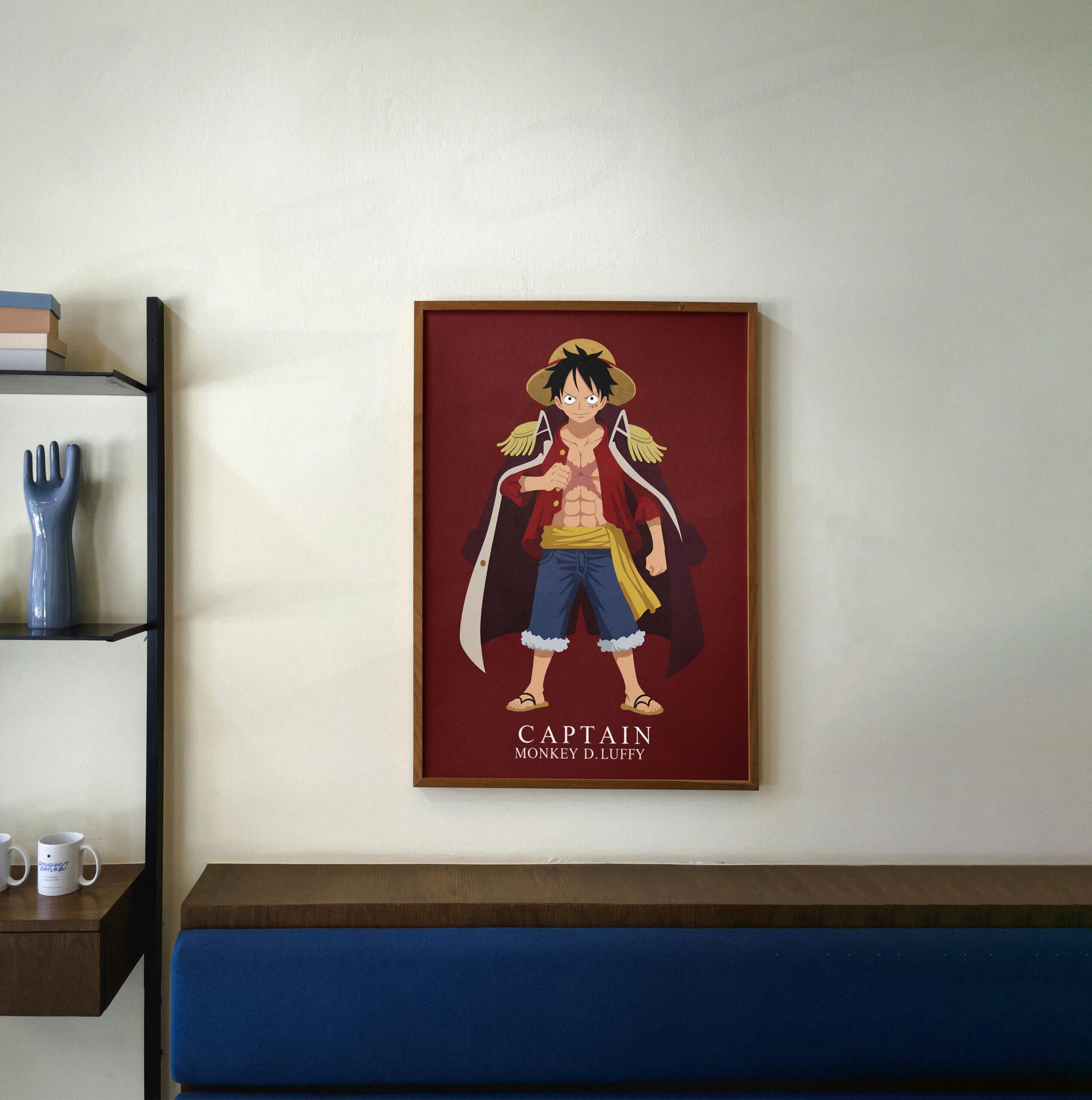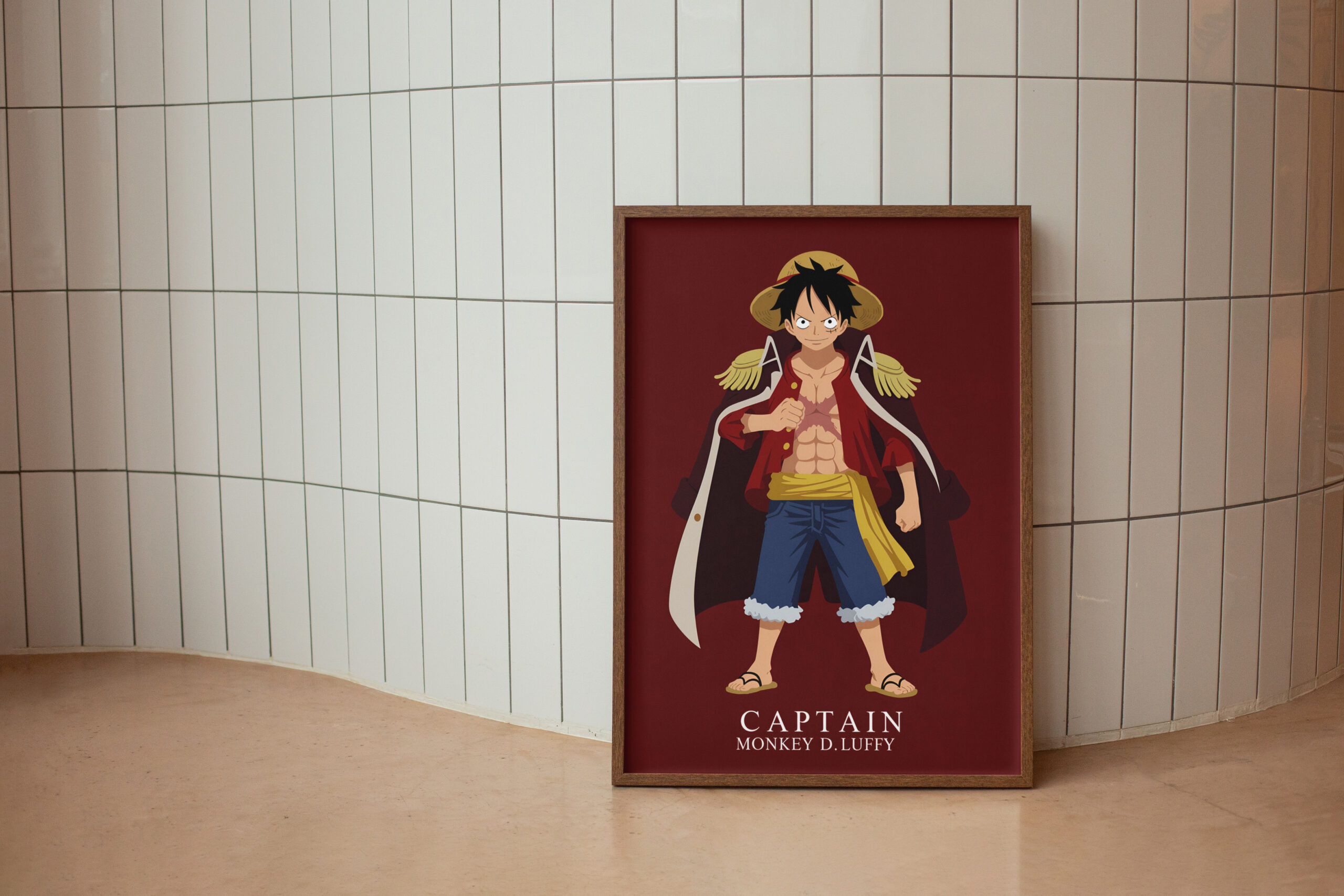 This anime pirate captain wall art print captures a fearless hero in full command stance. Straw hat on. Coat draped like a crown. Eyes locked forward. No chaos, no noise, just confidence.