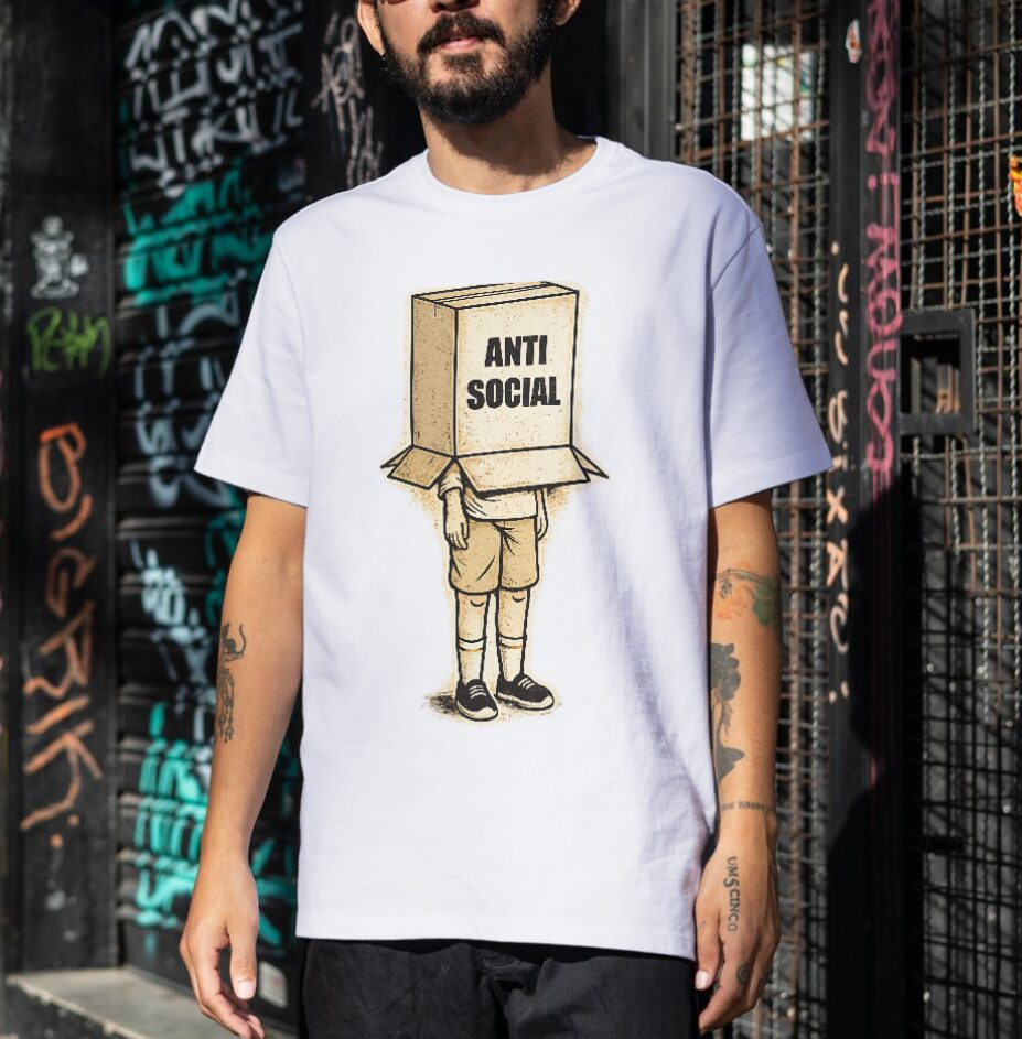 Wear the energy of Anti Social Cardboard Box Vintage as a clean, bold graphic on a comfortable cotton t-shirt made for daily life.