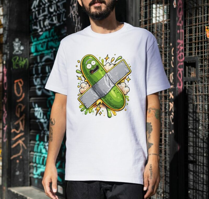 Wear the energy of Cartoon Pickle Capsule as a clean, bold graphic on a comfortable cotton t-shirt made for daily life.
