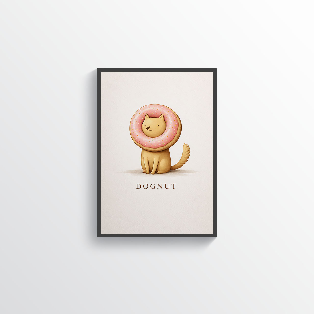 Dognut Wall Art Print – Cute Dog Illustration with Donut Collar