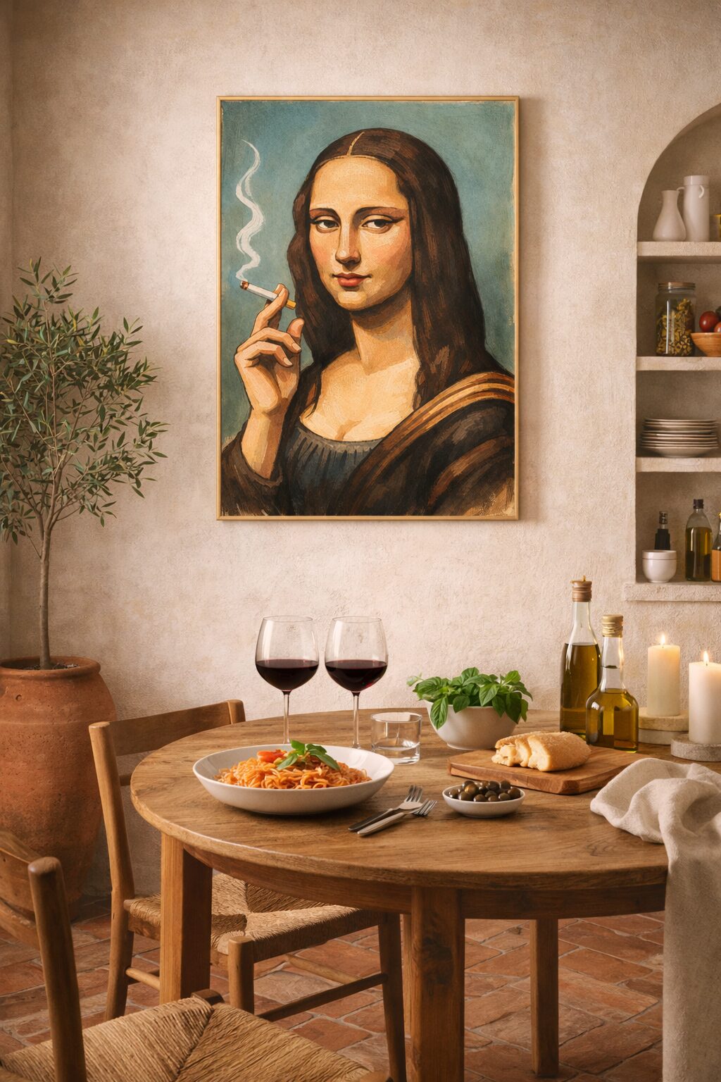 A timeless icon, reimagined with quiet defiance. This Mona Lisa smoking wall art print blends Renaissance elegance with modern irreverence, transforming the world’s most recognizable portrait into a subtle statement on rebellion, irony, and contemporary culture.