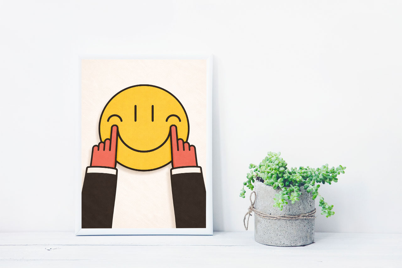 • Minimalist smiley illustration with bold graphic impact