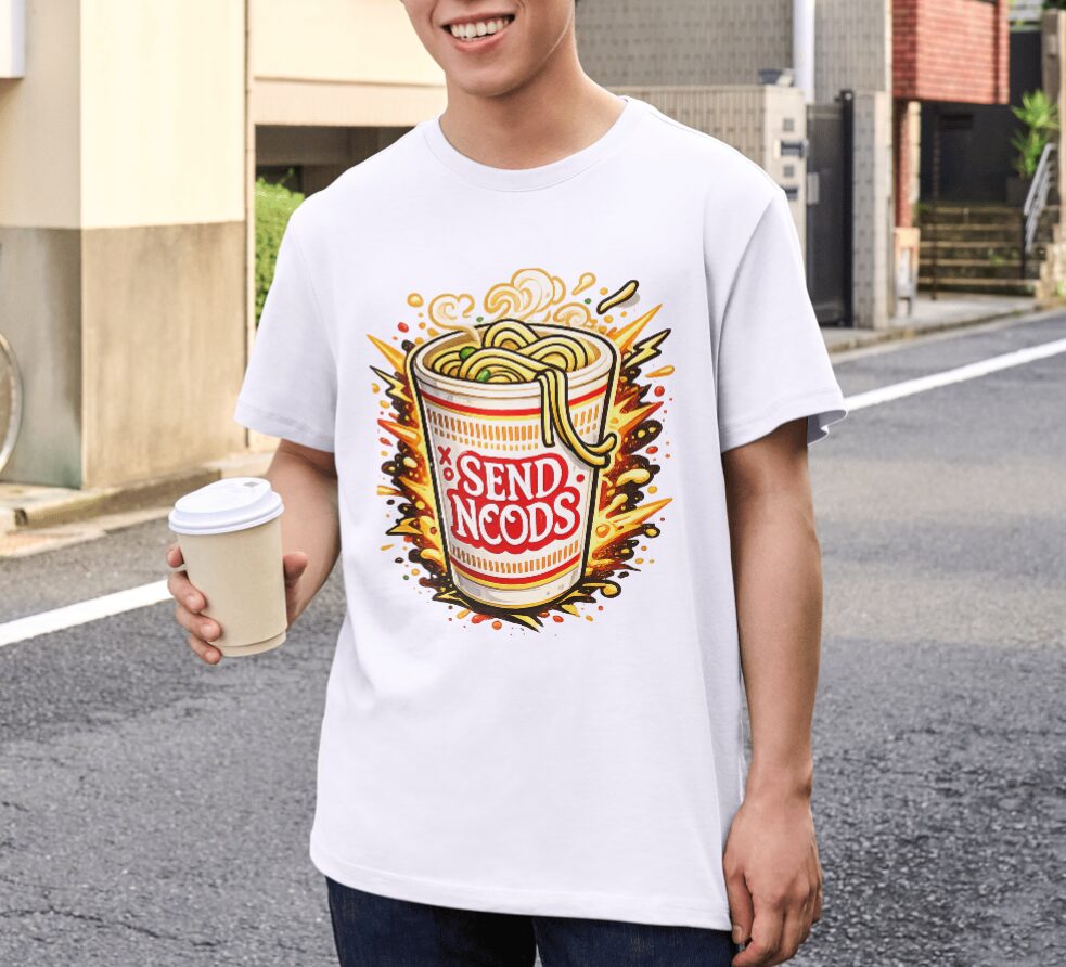 Wear the energy of Send Noods Ramen Explosion as a clean, bold graphic on a comfortable cotton t-shirt made for daily life.