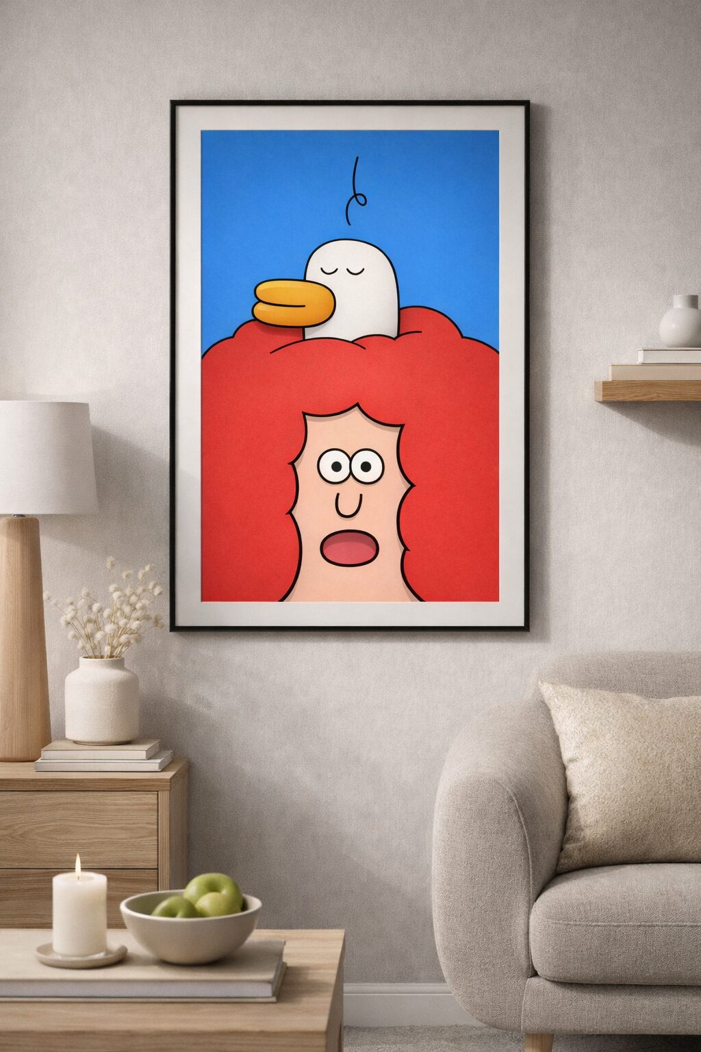 This illustration leans hard into absurd humor and bold simplicity. Clean lines, saturated primary colors, and exaggerated expressions make it instantly readable and emotionally effective. It’s the kind of image your brain registers before logic even shows up.