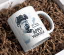 “Apply Yourself” blends chemistry lab aesthetics with bold determination. Featuring a serious chemist figure, laboratory flask graphics, and a retro RV silhouette, this design captures grit, science passion, and focused ambition.