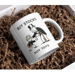 • 1 premium printed mug featuring the exact “Buy Stocks Not Toys” design