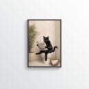 This dark-humor wall art print captures a black cat seated on a toilet, calmly reading the newspaper. The contrast between the composed posture and the absurd setting creates a piece that feels intentional, witty, and quietly confrontational.