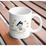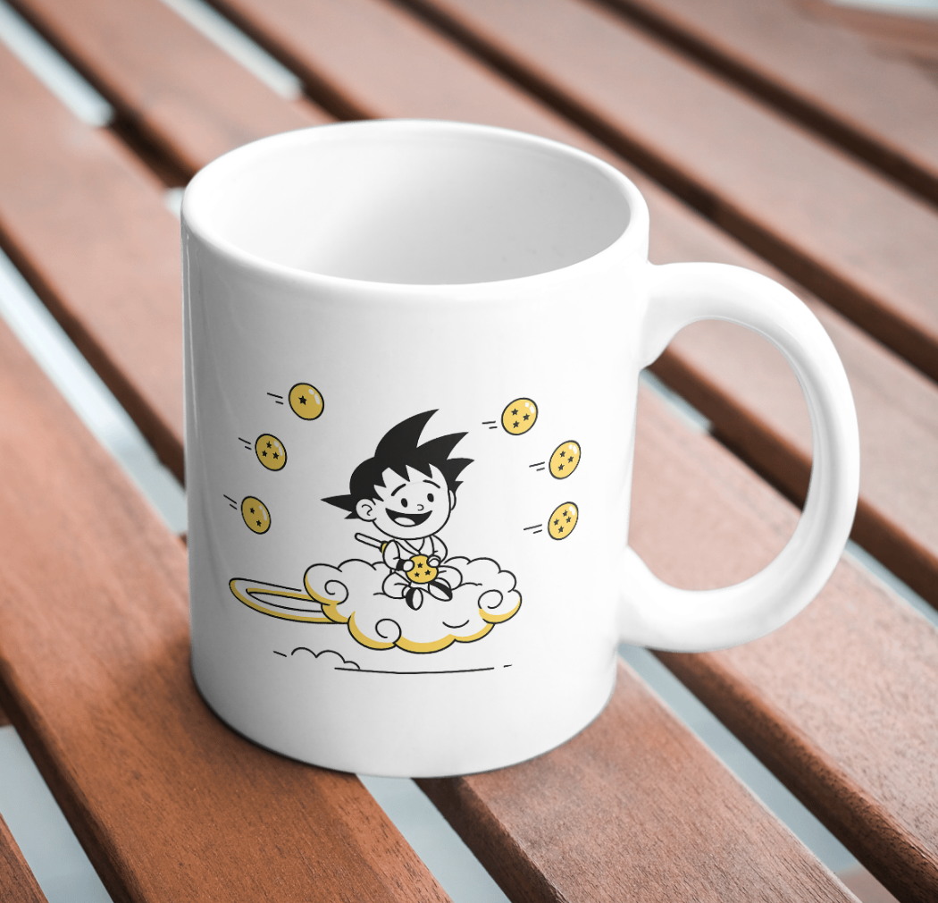 This playful illustration features a cheerful anime-inspired character riding a fluffy cloud while holding a glowing star ball. Surrounded by floating orbs, the design radiates nostalgia, adventure, and lighthearted energy.