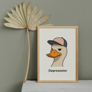 Sad Duck Art Print, Dark Humor Meme Poster, Funny Quirky Wall Decor, Emotional Cartoon Illustration, Digital Download