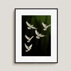 White Doves Wall Art – Peaceful Birds Digital Print on Green Background Digital Download
