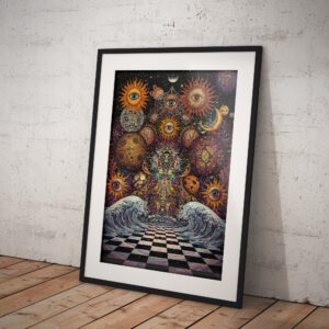 • Psychedelic Eye Cosmos Print, Surreal Sacred Geometry Wall Art, Trippy Mystical Universe Illustration