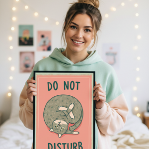 • Do Not Disturb Cat Print, Funny Cat Wall Art, Dorm Room Decor, Cute, Humorous Study Door Sign Art