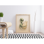 Cute Alien Hugging Cat Whimsical Surreal Art Print