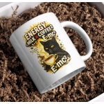 Fuel your brain the scientific way. This bold design blends a sharp-eyed black cat, a steaming coffee cup, and the iconic energy formula into a playful tribute to caffeine-powered intelligence.