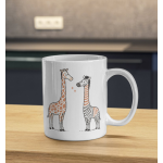 This charming safari duo showcases a tall giraffe and striped zebra standing side by side in clean minimalist style. Soft tones and simple linework create a calm, elegant wildlife aesthetic.