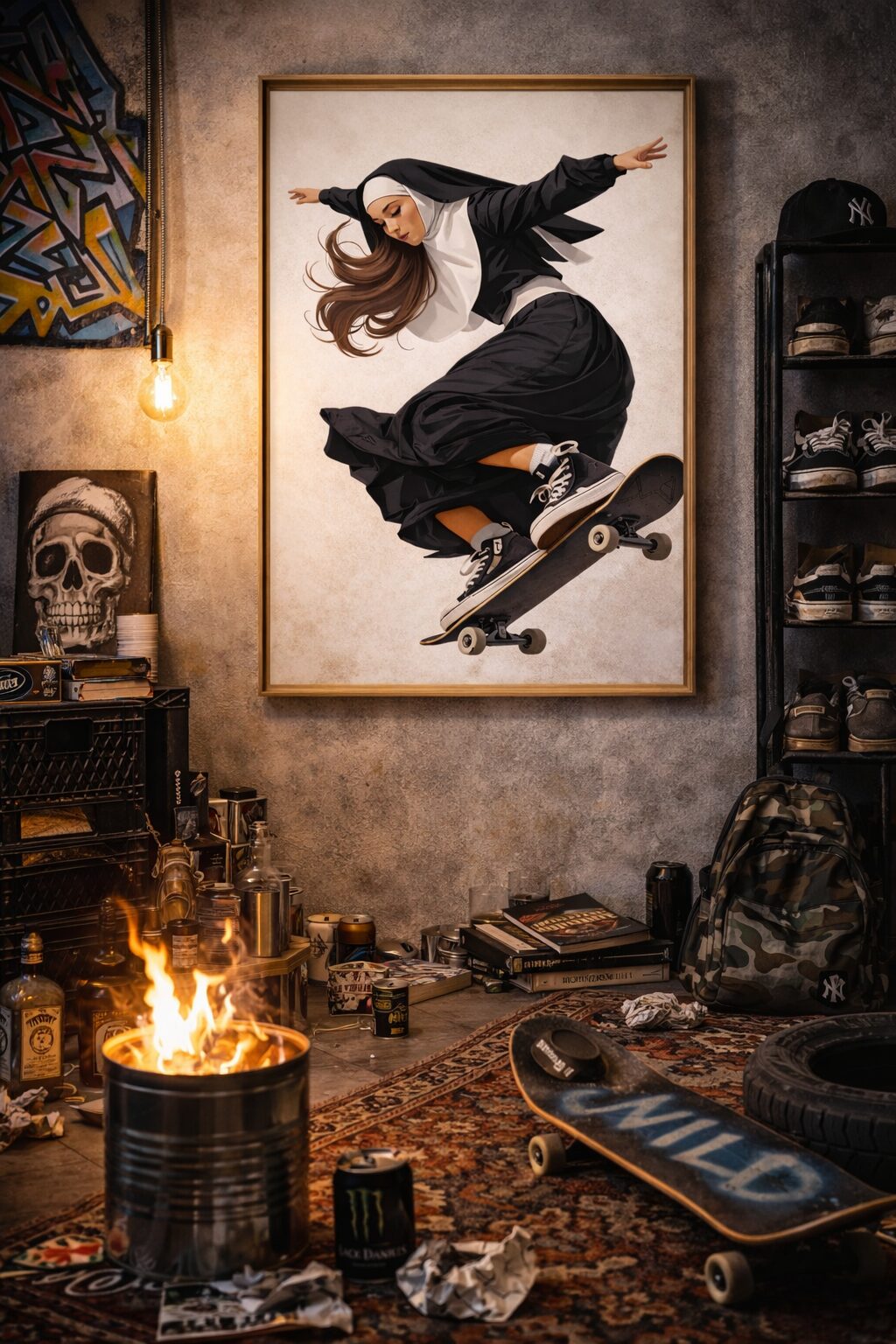 Grace in Motion – Skateboarding Nun Wall Art Print