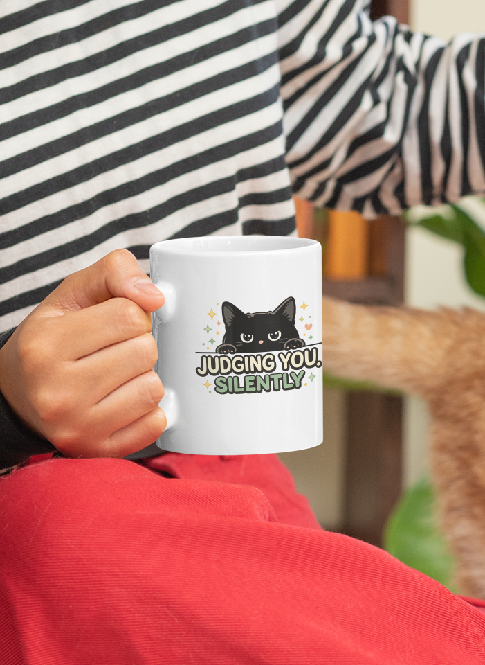 Judging You Silently Black Cat Mug – Funny Sarcastic Cup