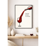 This artwork captures a familiar moment with elegant restraint. A single, expressive brushstroke of deep red wine arcs from bottle to glass, suspended mid-pour against a textured off-white background. The composition is intentionally sparse, allowing the gesture, color, and negative space to carry the entire narrative. Paired with understated typography, the piece balances humor and refinement without tipping into novelty. It feels modern, relaxed, and quietly confident—designed for spaces that appreciate wit delivered with discipline.