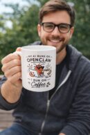 A witty tech-inspired mug featuring a cool crab coding on a laptop with the line 'My AI Runs on OpenClaw – I Run on Coffee.' Perfect for developers, AI engineers, programmers, and caffeine-powered creators.