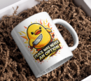 Explosive cartoon mug featuring an angry yellow chick holding a knife with the phrase “Peace Was Never an Option.”