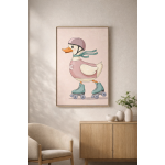 Roller Skating Duck Wall Art Print – Cute Animal Illustration for Kids Room, Nursery & Modern Home Decor