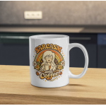 Retro aesthetic mug combining sarcasm and caffeine in one bold design.