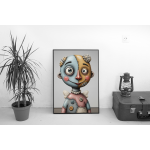 Stitched Smile – Surreal Patchwork Doll Portrait Wall Art Print