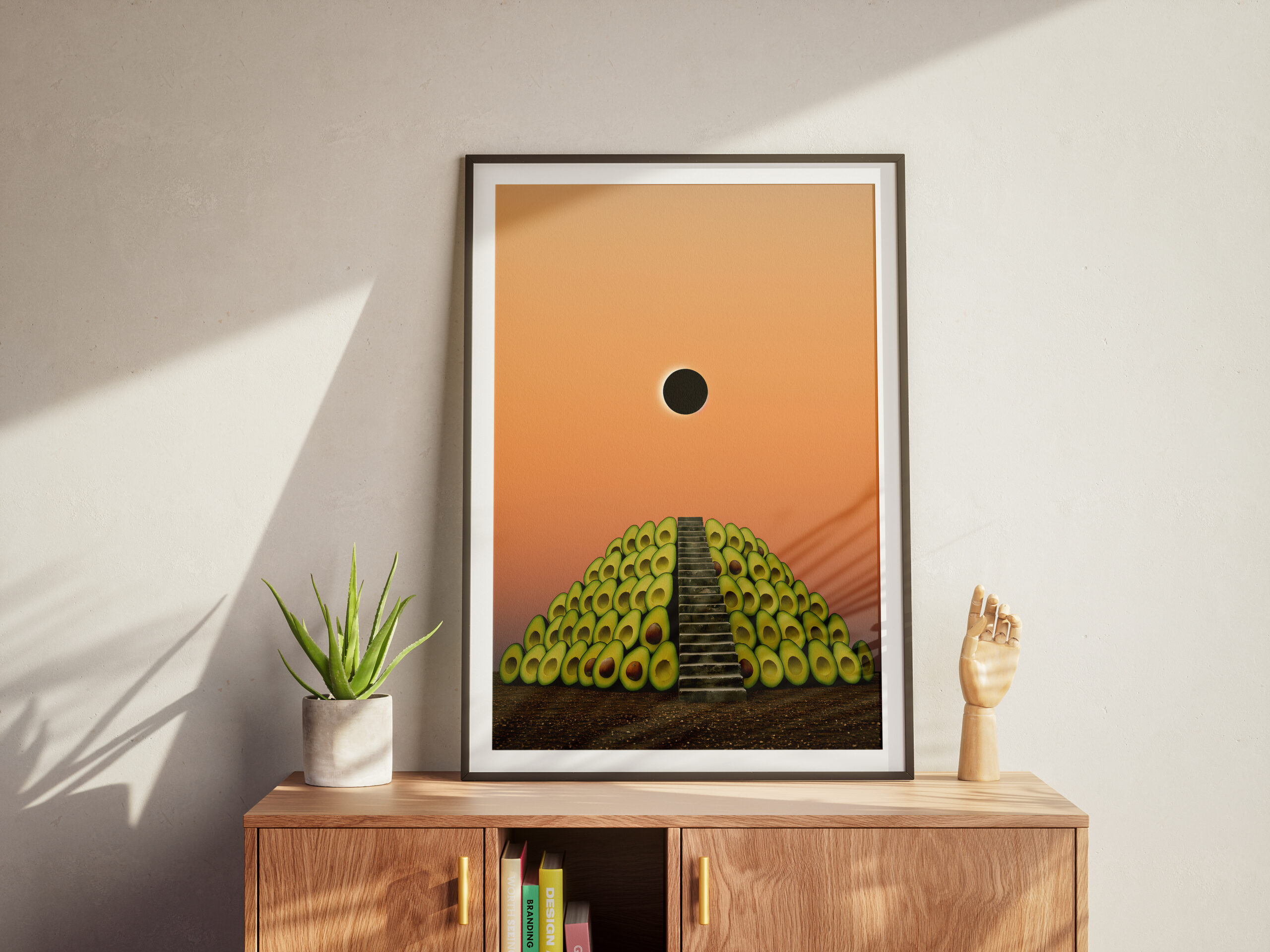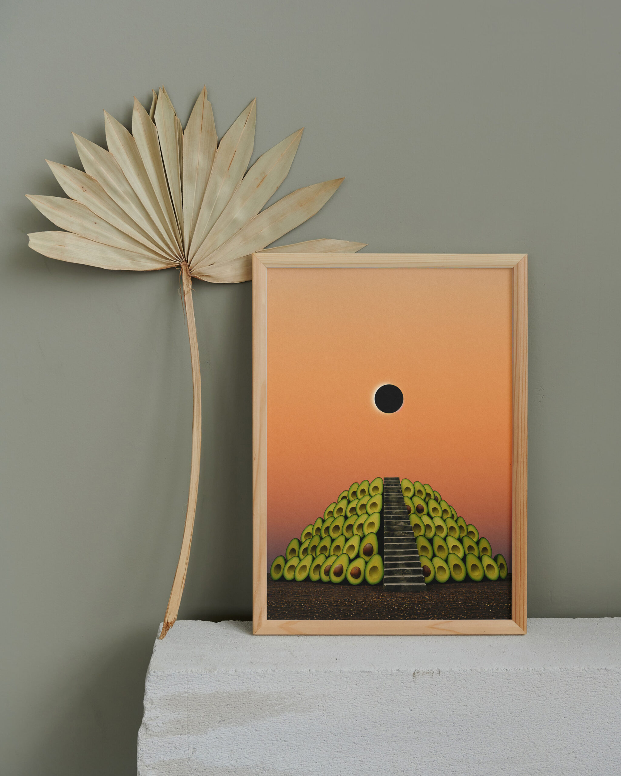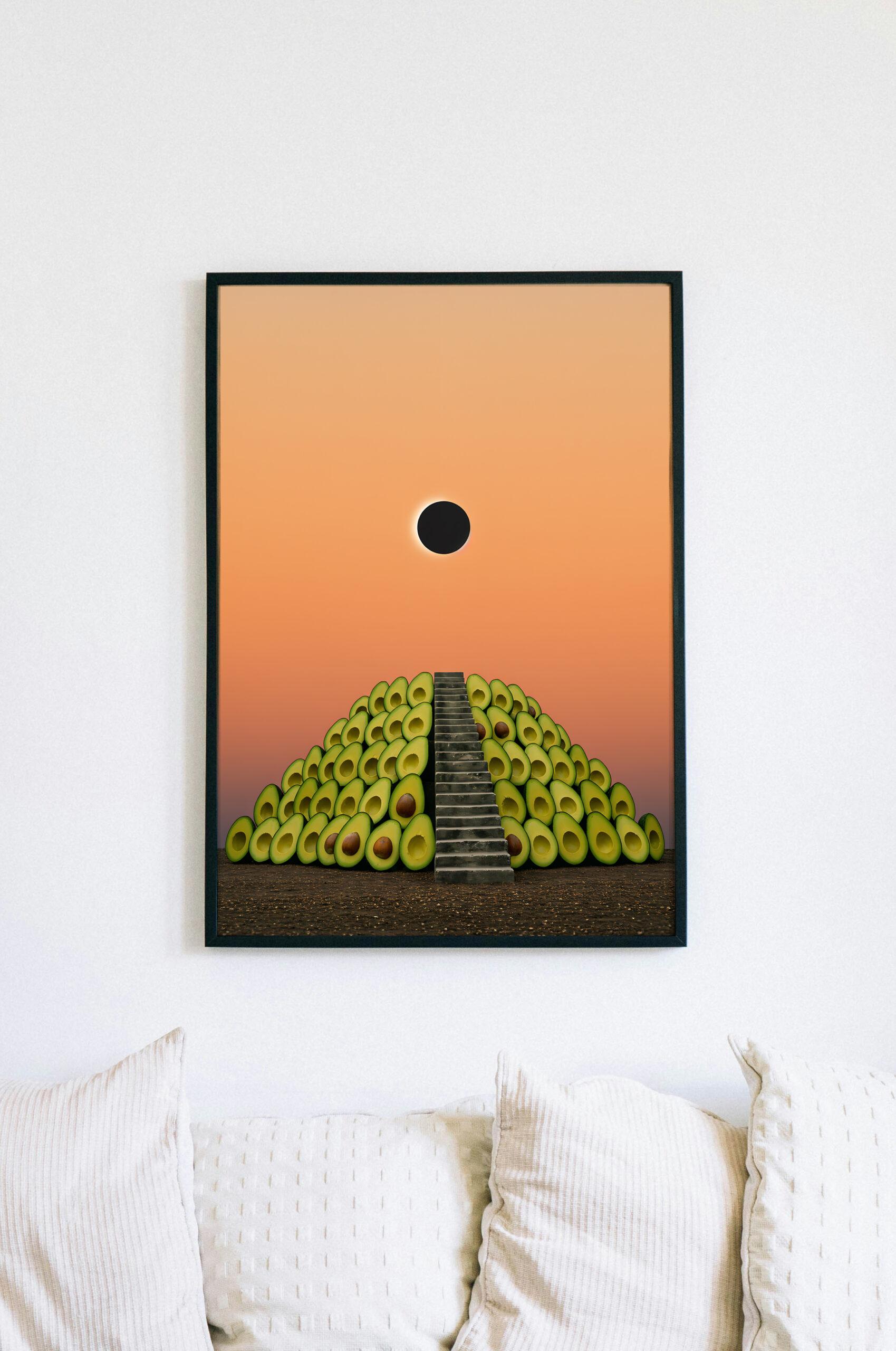 Surreal Avocado Pyramid Art Print, Whimsical Kitchen Wall Decor, Quirky Food Illustration