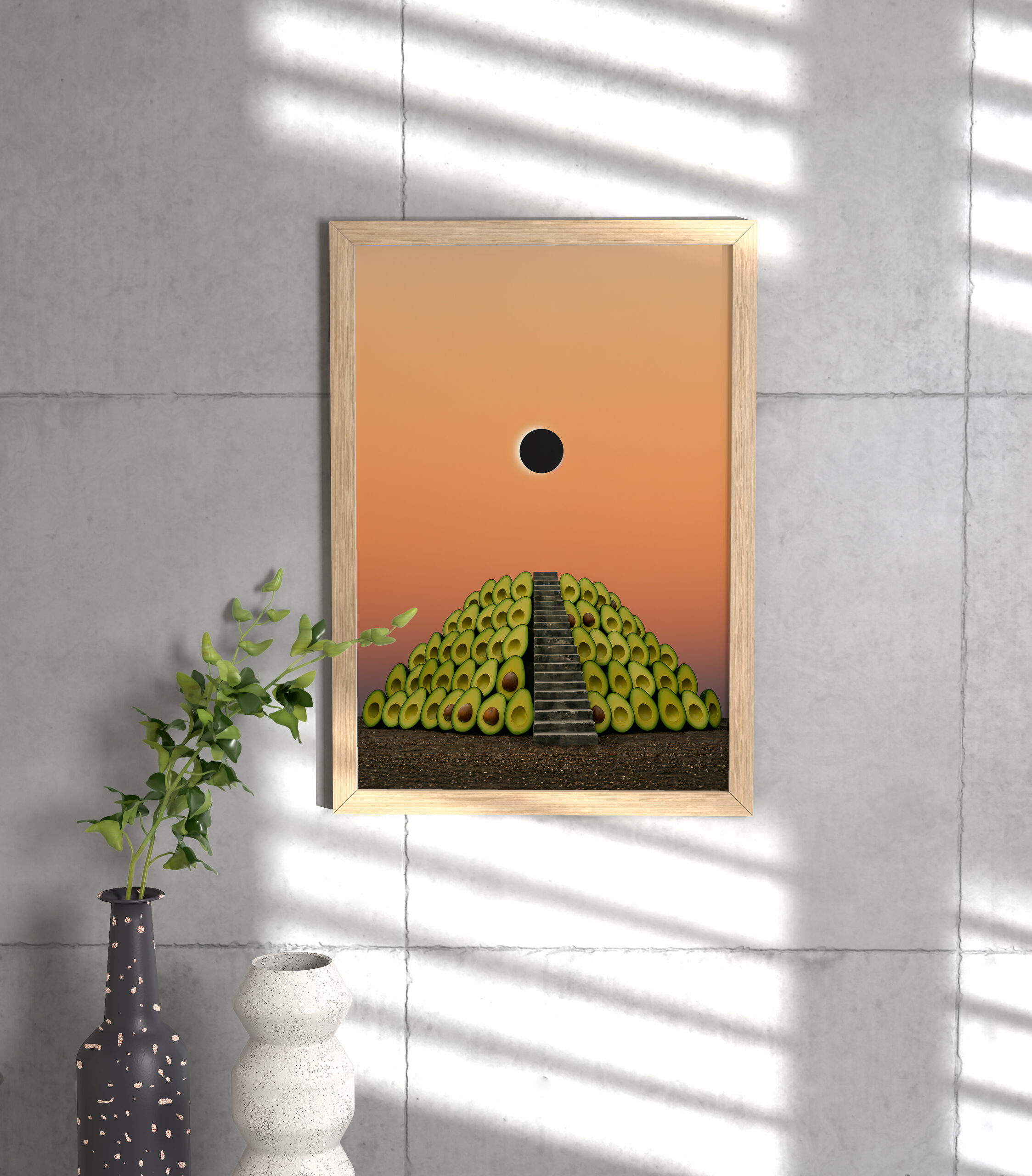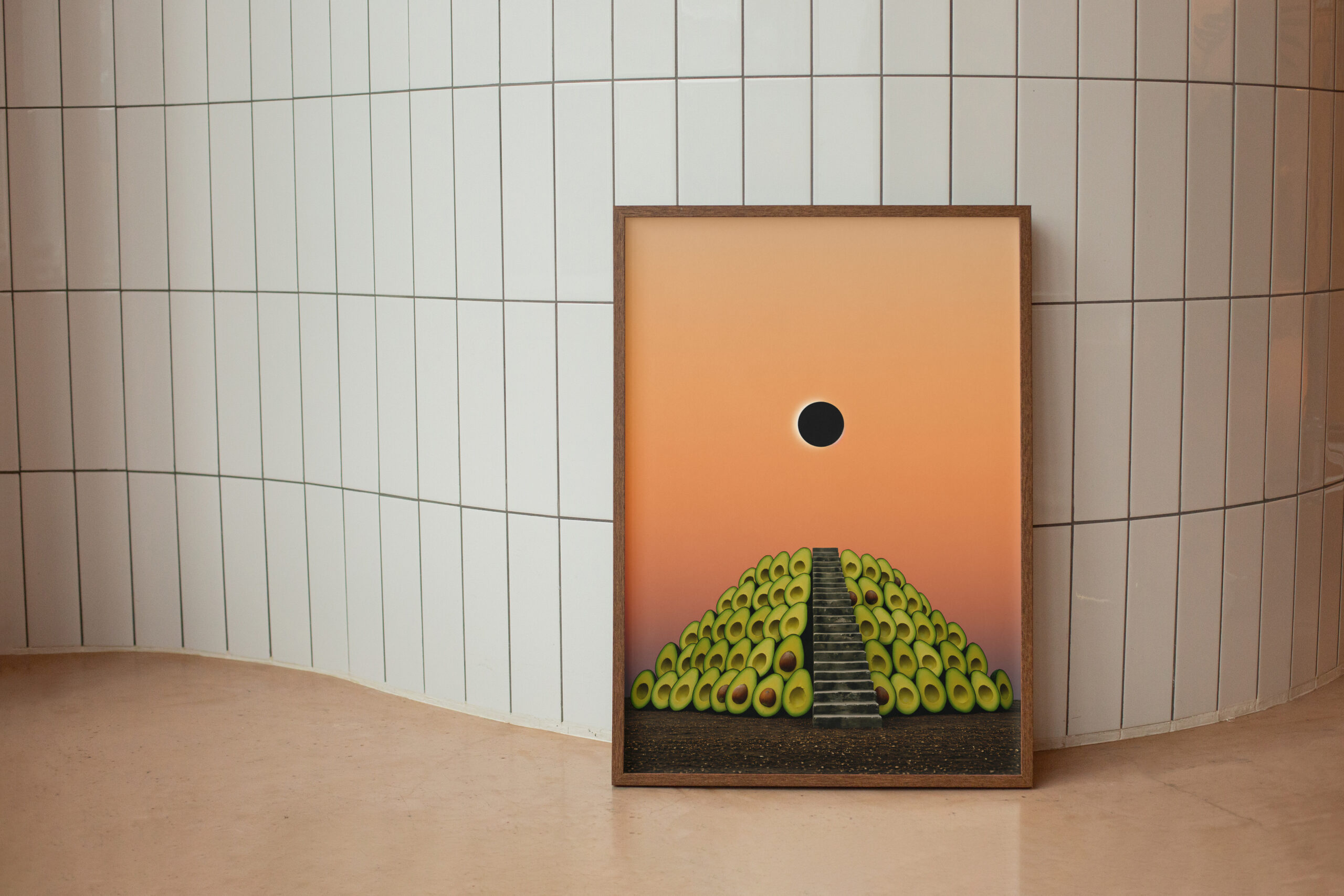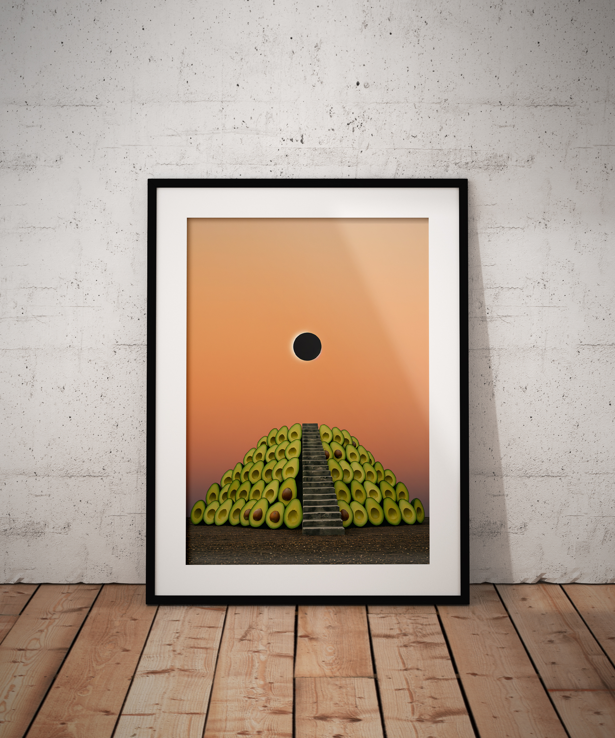 Step into the surreal with this Avocado Pyramid Eclipse Print — a one-of-a-kind digital artwork where a staircase leads to the cosmic core of guacamole dreams 🌒🥑