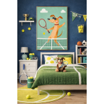 Tennis Dog Wall Art Print – Cool Sports Animal Illustration for Kids Room, Nursery & Modern Home Decor