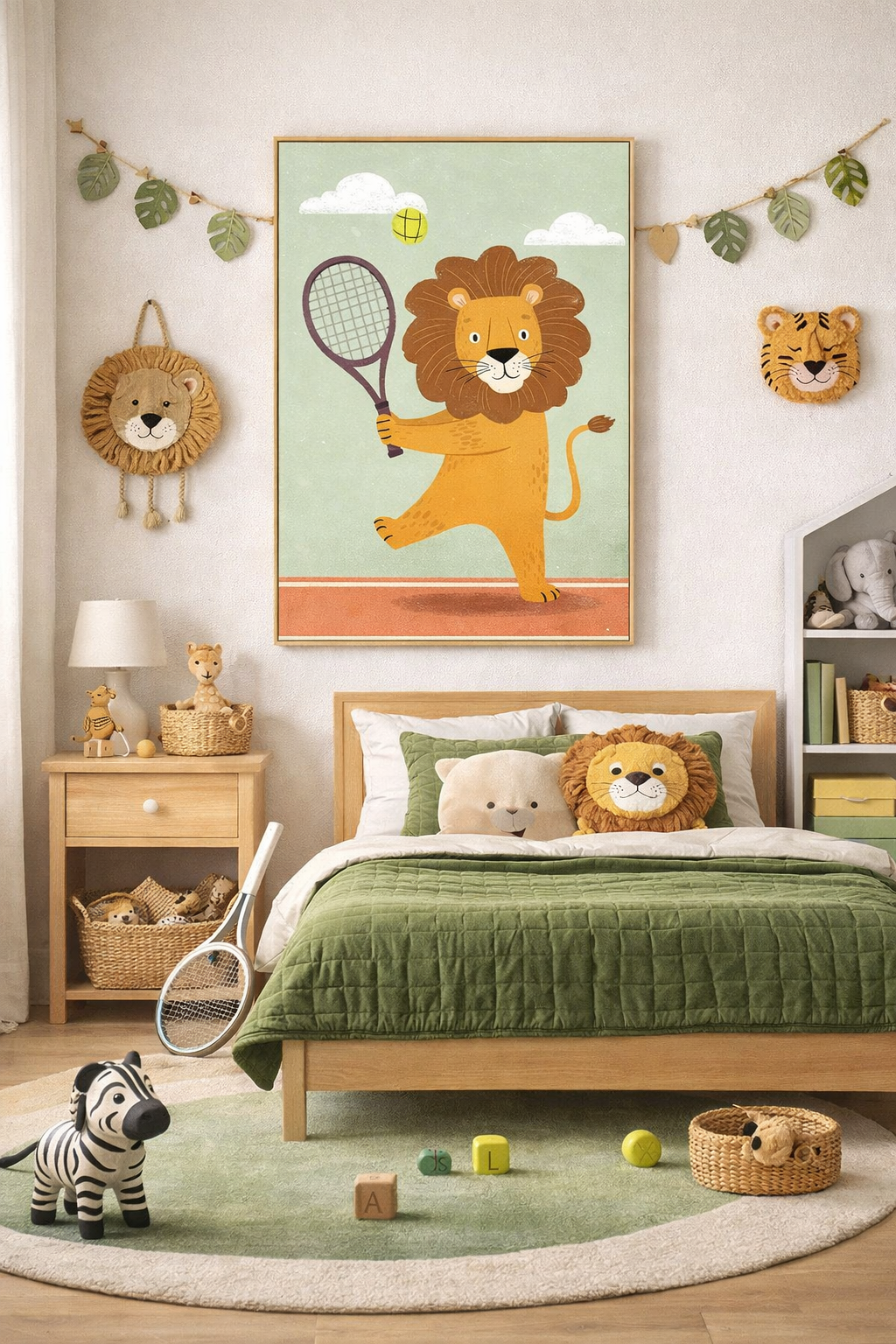 Tennis Lion Wall Art Print – Cute Safari Animal Illustration for Kids Room, Nursery & Modern Home Decor