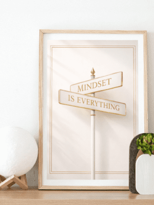Mindset Is Everything Minimal Gold Typography Wall Art Print