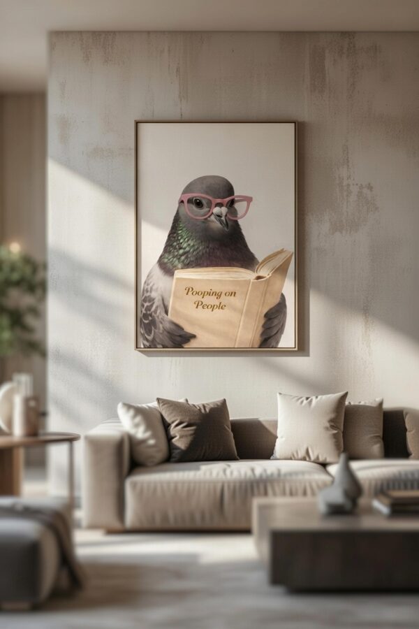 Intellectual Pigeon – Funny Animal Illustration Wall Art Print