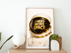 16,50 $ – 44,50 $Price range: 16,50 $ through 44,50 $Minimal astronaut wall art with bold gold typography and playful cosmic message. -